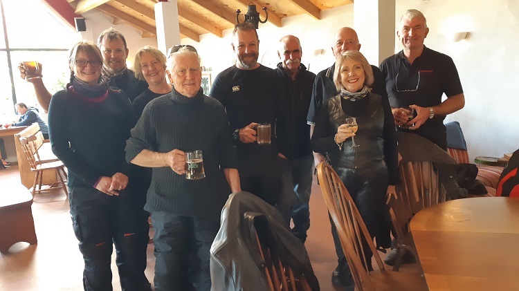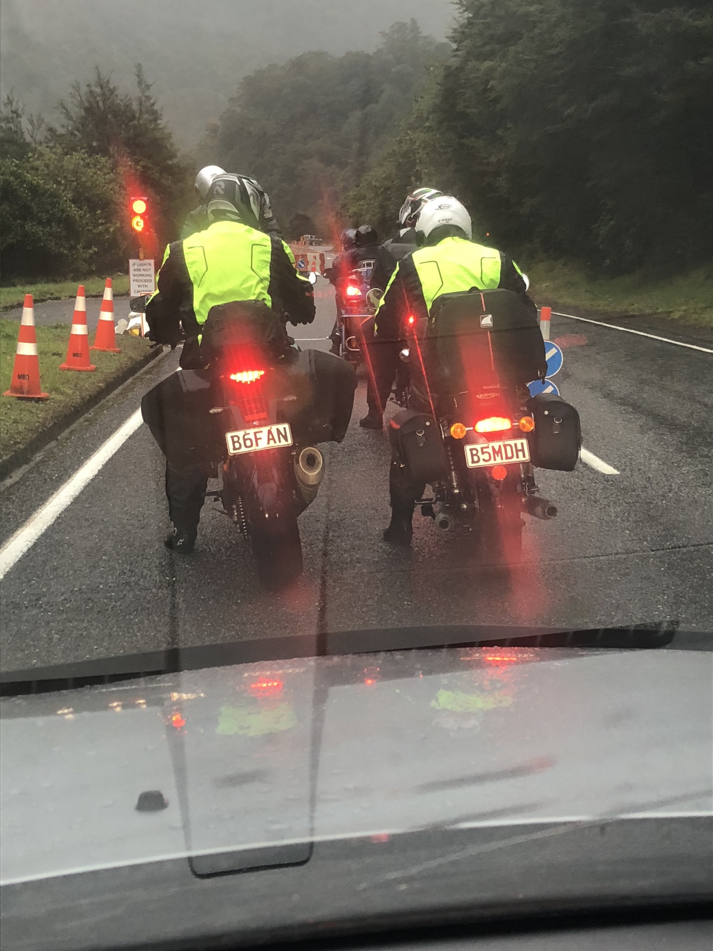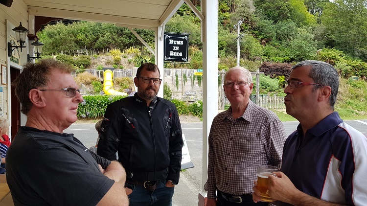 The two wheel club members suffered through wind, rain, cold, butt-ache, leg-ache ... Particularly through Kaikura where the road works had slow and challenging riding as well as many lengthy stops. Andrew and Suzie were nice and comfy, toasty and dry in their car ... sipping BEERS! Did they take pity on us and bring us sustenance along the way when we stopped for the road works? Hmmmmm!
